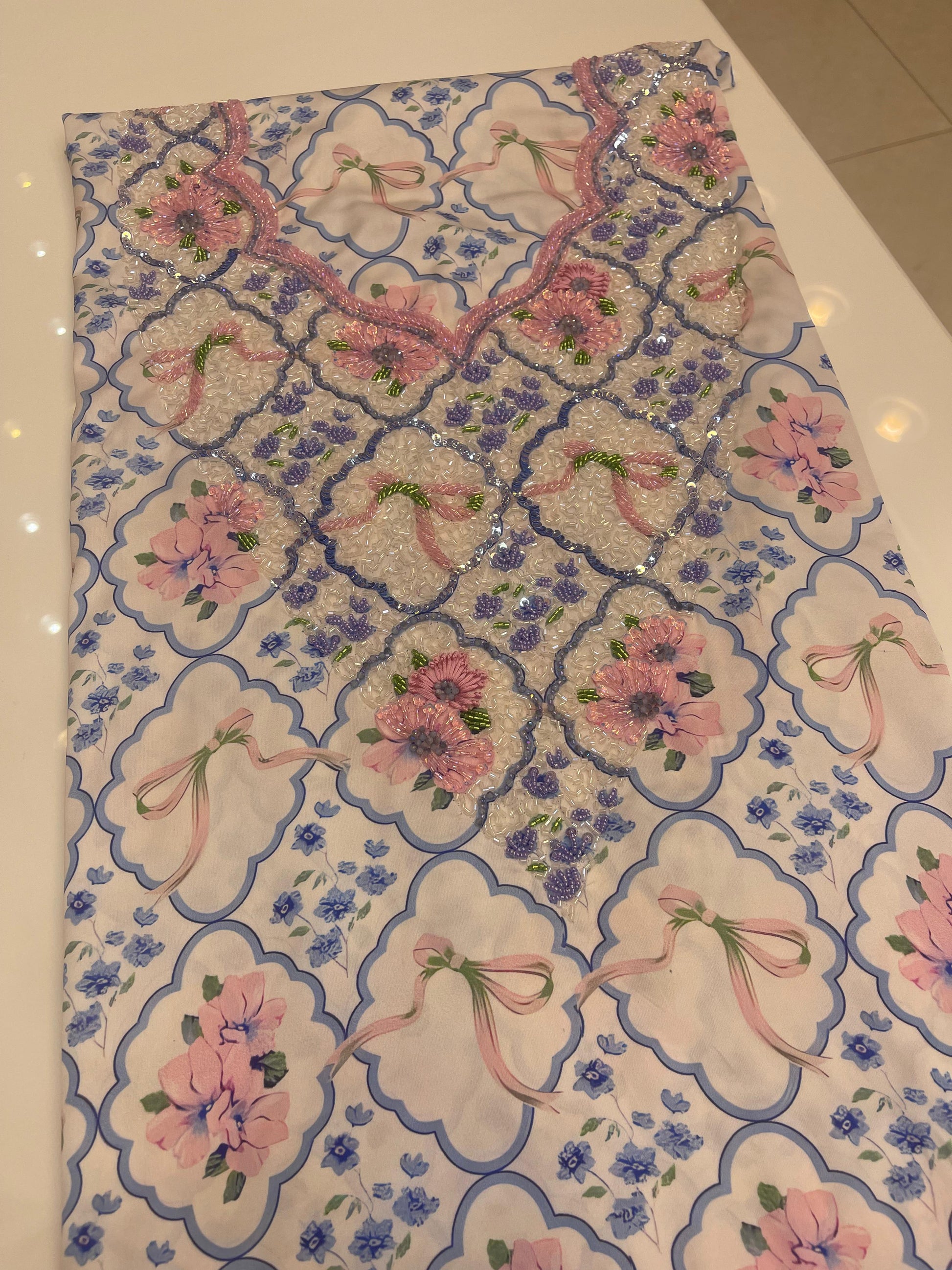 Our VIP Makhawer is a true work of art, crafted from the finest Italian silk and adorned with intricate hand-beaded embellishments. Every detail is meticulously designed by skilled artisans, ensuring a luxurious and elegant finish. The soft, flowing silk drapes beautifully, while the delicate beading adds a touch of shimmer and sophistication. Perfect for those who appreciate timeless craftsmanship, this Makhawer is a statement piece that exudes grace and refinement.